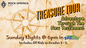 All 1st-5th graders are invited to join us every Sunday night in Kidz Town for an epic adventure through the New Testament during our Treasure Tour! Each week, we’ll explore legendary Bible stories you know and love — plus hidden gems that few kids have ever discovered!