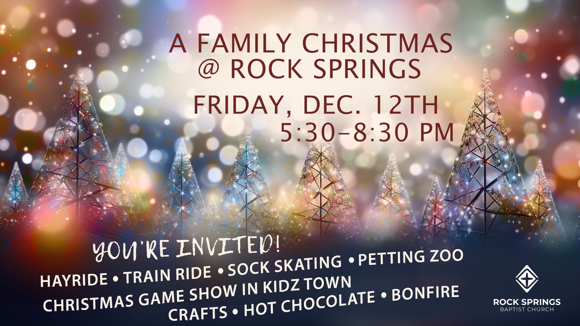You’re invited to A Family Christmas @ Rock Springs! Join us for lots of fun family activities, including a hayride, train ride, bonfire, hot chocolate, Christmas […]