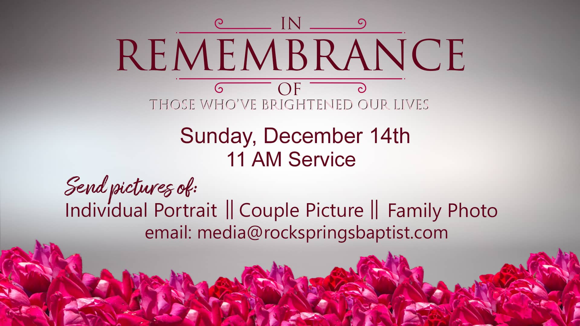 Memorial presentation for members who passed during the year will be held in our 11 am service only. Please submit photos by December 10th. A family […]